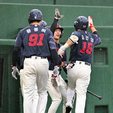 2026.02.26 14: 36김민성, 역전 만루홈런에 싱글벙글