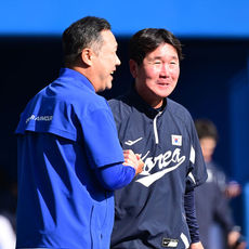 2026.02.26 16: 12대표팀 류지현 감독과 삼성 박진만 감독, '연습경기를 마치고'