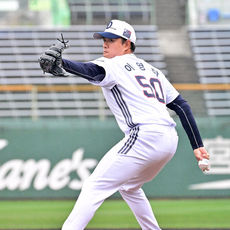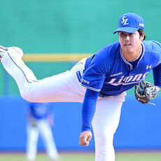 2026.02.26 15: 37역투 펼치는 삼성 정민성, '모자가 벗겨질 정도로'