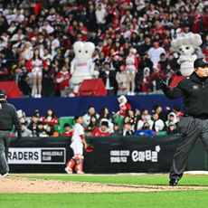 2026.04.07 20: 00류현진에게 피치클락 위반 경고 주는 권영철 구심