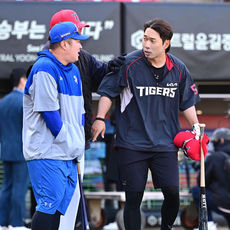 2026.04.07 16: 38삼성 최형우와 인사 나누는 KIA 고종욱