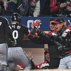 2026.04.08 21: 22그라운드 홈런 오지환 만세로 반기는 염경엽 감독