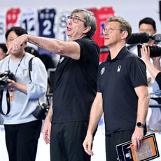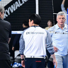 2026.04.08 21: 36미리 걸린 현수막 내려달라는 제스처 보내는 현대캐피탈 필립 블랑 감독