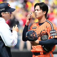 2026.04.11 14: 43피치컴 점검하는 한화 선발 왕옌청