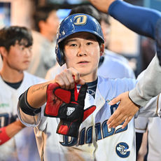 2026.04.14 19: 40박건우, 1타점 성공 세리머니