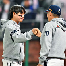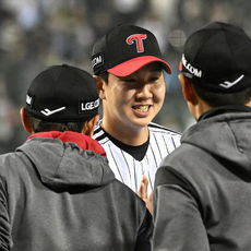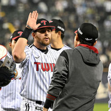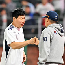 2026.04.14 21: 35염경엽 감독과 승리의 기쁨 나누는 송승기