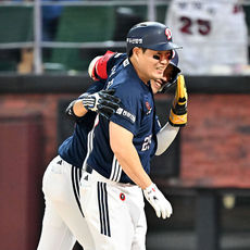 2026.04.14 19: 26박찬호,'두산에서 첫 홈런! 주먹 불끈'