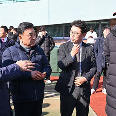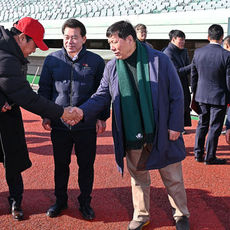 2026.01.13 12: 38울산 웨일즈 코치와 인사 나누는 허구연 KBO 총재와 김두겸 울산 시장