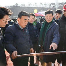 2026.01.13 12: 38기념촬영하는 허구연 KBO 총재와 김두겸 울산 시장 그리고 울산 웨일즈 코치진