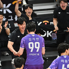 박철우 감독대행, 짜릿한 포효