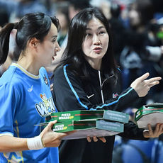 2026.01.04 14: 46팬들에게 피자 배달하는 팀 포니블 박정은(BNK)감독과 김단비(우리은행)