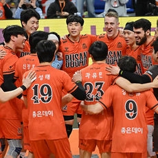 2026.01.09 20: 42승리 기쁨 나누는 OK저축은행 선수들