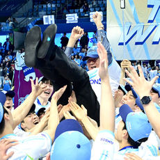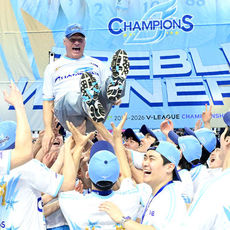 2026.04.10 22: 452025-26 시즌 트레블 헹가래 받는 대한항공 헤난 달 조토 감독