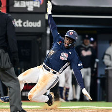 2026.04.10 23: 10김민석 적시타에 득점 올리는 카메론