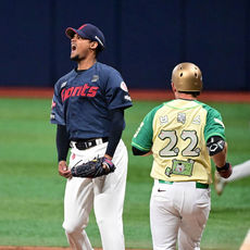 2026.04.10 20: 58최정원, 호수비 하이파이브