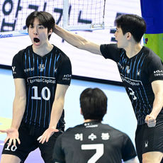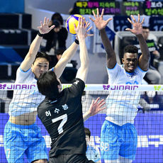 철벽 블로킹 쌓는 대한항공 마쏘와 임동혁