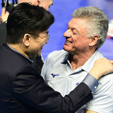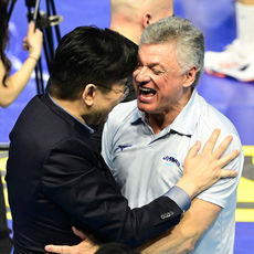 2026.04.10 22: 08대한항공 조원태 구단주와 헤난 달 조토 감독, '우승 포옹'