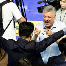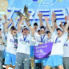 2026.04.10 22: 15우승 트로피 번쩍 드는 대한항공 헤난 달 조토 감독
