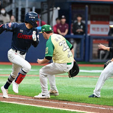 2026.04.11 19: 35득점 올리는 정수빈-김민석