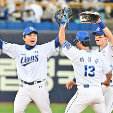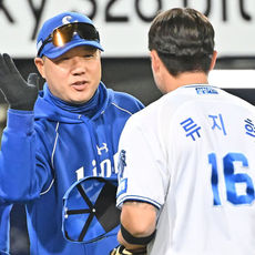 2026.04.11 20: 18승리 기쁨 나누는 박진만 감독과 류지혁