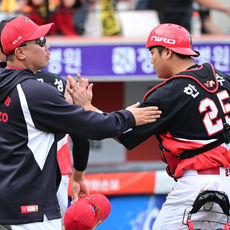 2026.04.12 17: 43맹활약으로 승리 이끈 한준수와 인사 나누는 KIA 이범호 감독