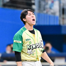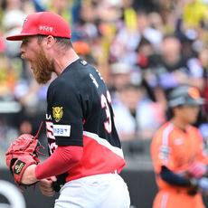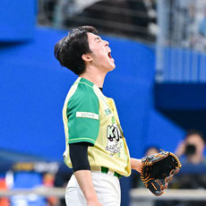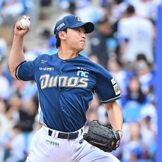 2026.04.12 15: 53배동현, 6이닝 무실점 환호
