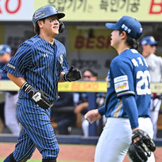 2026.04.12 15: 40강민호, 기분 좋은 실책으로 득점