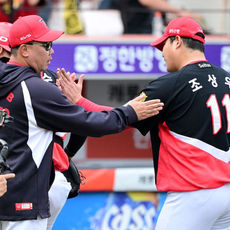 2026.04.12 17: 35조상우와 승리 기쁨 나누는 KIA 이범호 감독
