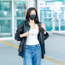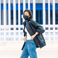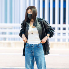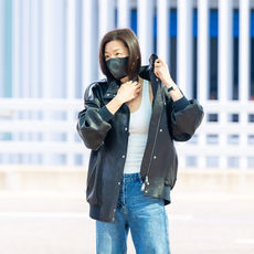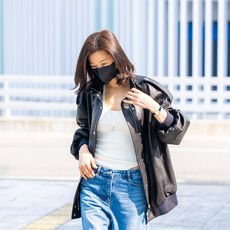 2026.04.14 12: 32전지현, 가죽재킷 속 민나시 패션