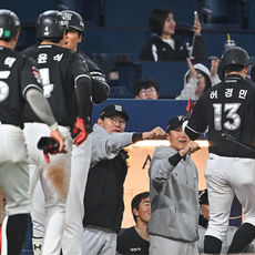 2026.04.14 20: 08이강철 감독, 득점 주자들과 하이파이브