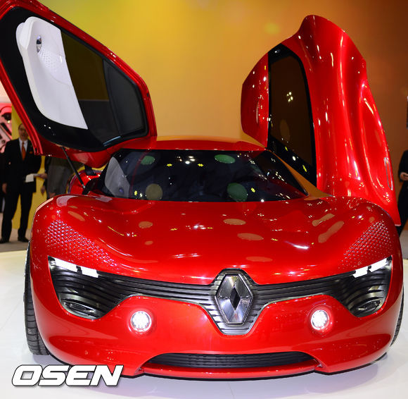 도쿄모터쇼에서 르노 DEZIR이 공개되고 있다.