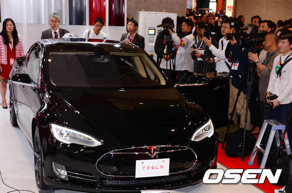 도쿄모터쇼에서 테슬라 모델S가 공개되고 있다.