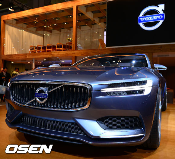 도쿄 모터쇼에서 볼보 컨셉트 쿠페가 공개되고 있다.