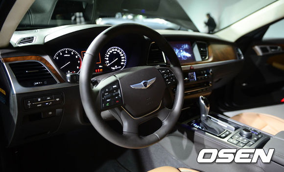 신형 '제네시스'의 실내 디자인은 수평 레이아웃 적용으로 안정된 느낌의 넓은 실내공간 구현, 사용자의 편의와 직관성을 고려한 인간공학적 설계, 고급 소재와 디테일 완성도를 높인 마감 처리를 통해 세련되면서도 품격 있는 프리미엄 이미지를 구현한 것이 특징이다.