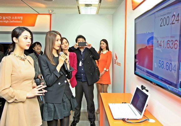 SK텔레콤이 '20MHz+10MHz'의 광대역 LTE-A 기술을 시연하며 3배 빠른 LTE 시대를 예고하고 나섰다. 윤아와 설리를 직접 초대해 광대역 LTE-A 기술을 이용, 외부에서 영상통화를 연결해 기술을 선보였다.