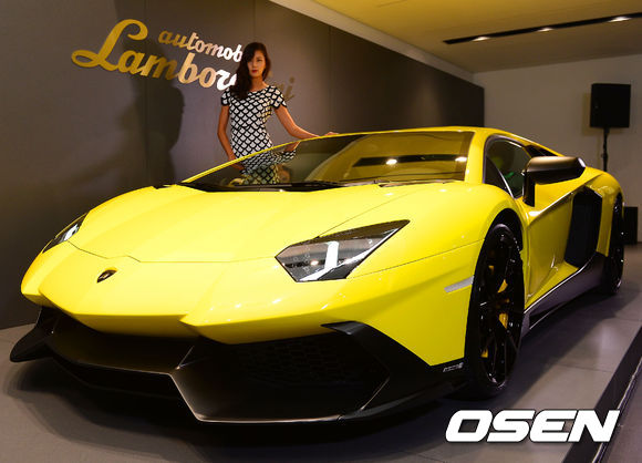 19일 오후 서울시 강남구 대치동 람보르기니 서울에서 열린 람보르기니 '아벤타도르 LP720-4 50° 애니버서리오' 출시 포토세션 행사에서 차량이 공개되고 있다.