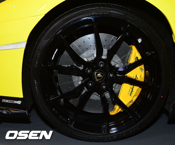 람보르기니 '아벤타도르 LP720-4 50° 애니버서리오'의 프론트 휠과 대형 캘리퍼