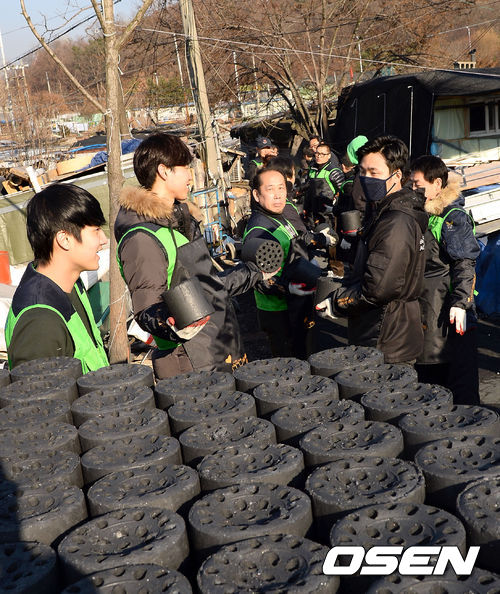 23일 오후 서울 개포동 개룡마을에서 열린 한국 기독교 부흥협의회와 함께하는 사랑의 연탄나눔 행사에서 시민들이 연탄을 나르고 있다.