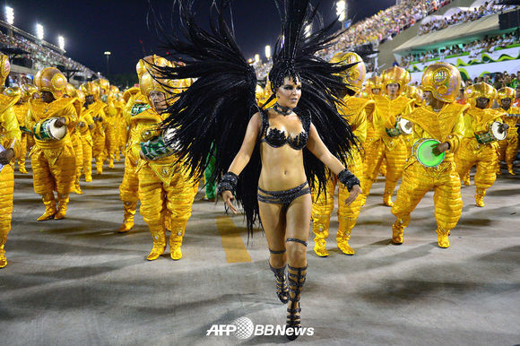 카니발을 위해 디자인된 700미터의 도로인 삼보드로모에서 매일 밤 삼바 스쿨들이 경연을 펼친다. 브라질 전역에 500개가 넘는다는 삼바 스쿨은 오직 카니발을 준비하기 위해 존재하는 학교다. 학교별로 주제를 정해 일 년간 준비한 춤과 연주를 한 시간에 걸친 행진으로 선보인다. / ⓒAFPBBNews = News1