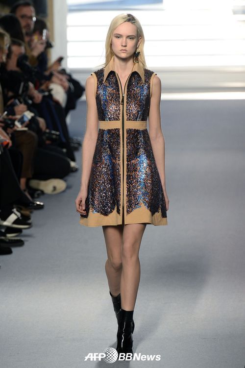 [OSEN=사진팀] 지난 5일(현지시간) 프랑스 파리에서 열린 '파리 패션위크 2014-2015 A/W' 루이비통 패션쇼에서 한 모델이 워킹을 하고 있다.