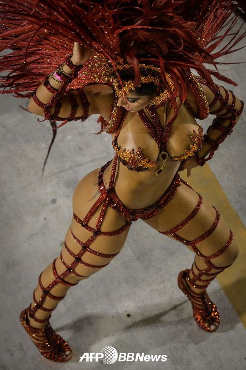화려한 의상을 입은 여성 댄서가 삼바 리듬에 몸을 맡기고 있다. /< 사진 > ⓒAFPBBNews = News1