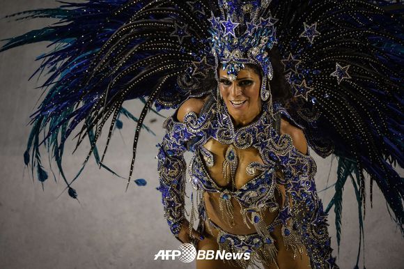 화려한 의상을 입은 여성 댄서가 삼바 리듬에 몸을 맡기고 있다. /< 사진 > ⓒAFPBBNews = News1