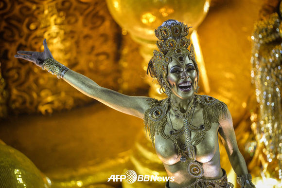 화려한 의상을 입은 여성 댄서가 삼바 리듬에 몸을 맡기고 있다. /< 사진 > ⓒAFPBBNews = News1