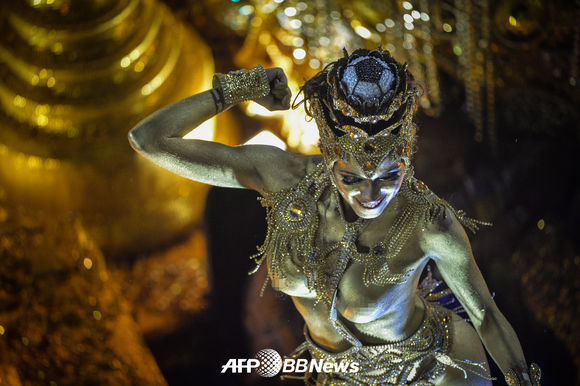 화려한 의상을 입은 여성 댄서가 삼바 리듬에 몸을 맡기고 있다. /< 사진 > ⓒAFPBBNews = News1