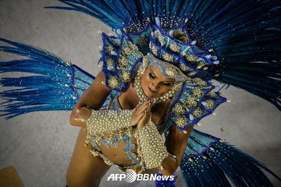 화려한 의상을 입은 여성 댄서가 삼바 리듬에 몸을 맡기고 있다. /< 사진 > ⓒAFPBBNews = News1