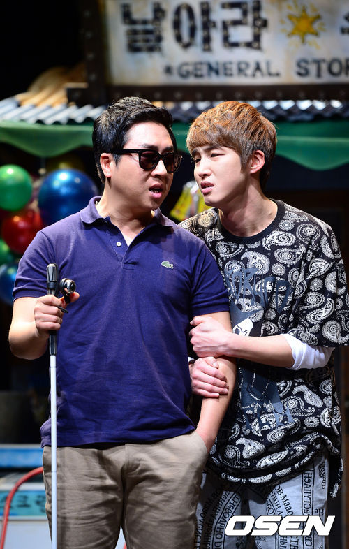 12일 오후 서울시 중구 충무아트홀 소극장 블루에서 열린 연극 '내 마음의 슈퍼맨' 프레스콜 행사, 이동우 김호진이 연기를 하고 있다.