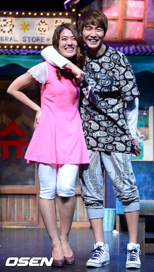12일 오후 서울시 중구 충무아트홀 소극장 블루에서 열린 연극 '내 마음의 슈퍼맨' 프레스콜 행사, 황지영 김호진이 포토타임을 갖고 있다.