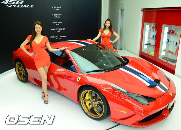 13일 오전 서울 강남구 청담동 페라리 전시장에서 페라리 '458 스페치알레(Speciale)가 공개되고 있다.