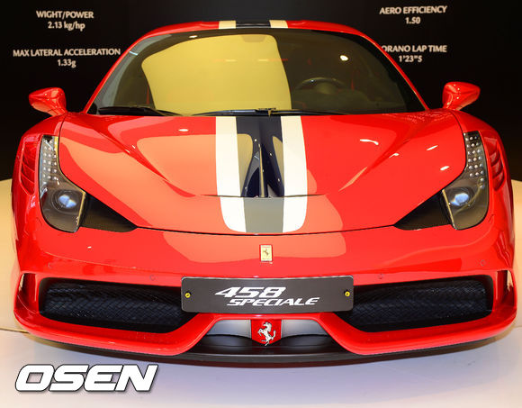 13일 오전 서울 강남구 청담동 페라리 전시장에서 페라리 '458 스페치알레(Speciale)가 공개되고 있다.