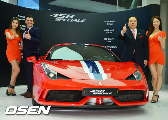 13일 오전 서울 강남구 청담동 페라리 전시장에서 페라리 '458 스페치알레(Speciale)가 공개되고 있다.